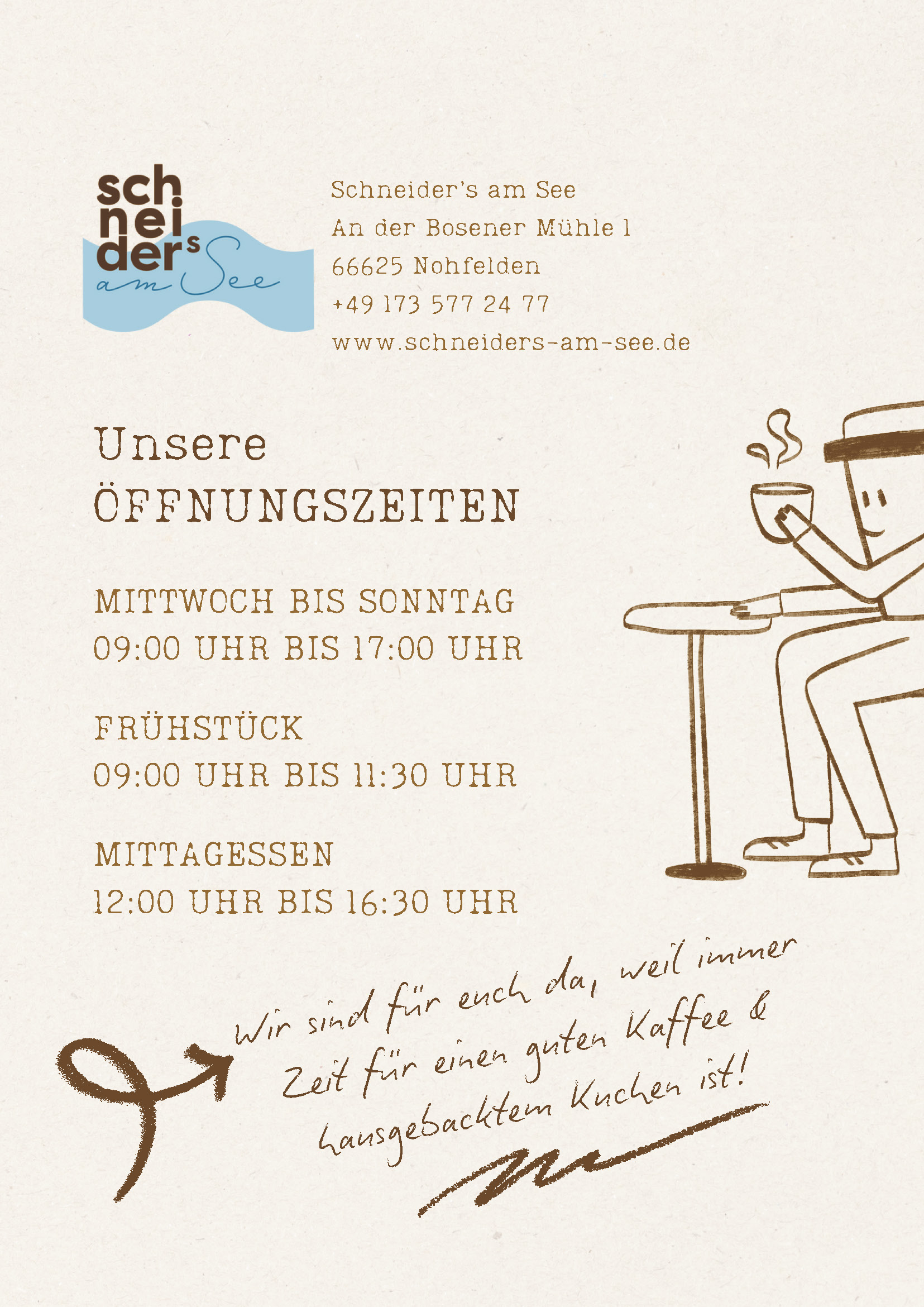So entstand im Jahr 2025 die Idee zu unserem Café, Bistro, Restaurant SCHNEIDERs am See – einem Ort, der Kunst & Kultur mit einem liebevoll kuratierten gastronomischen Angebot verbindet.